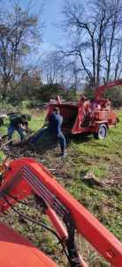 The men helped run a wood chipper and later Brenda and Lonita helped spread the mulch. The manual work outside helped refresh everyone!