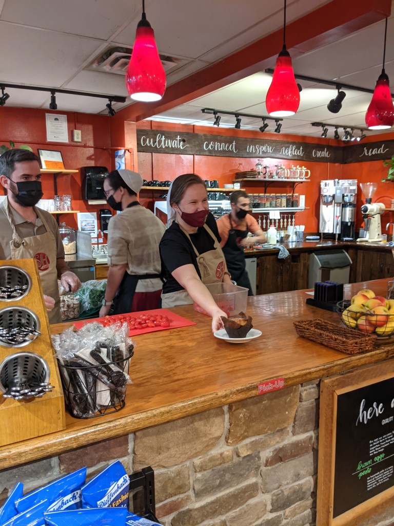 Keith took Annalisa and Wendy to Sowers Harvest Café by 7:15 so they could be assistants for the staff for the day. The rest of the group arrived when they opened after 8:00, and enjoyed a delicious breakfast.