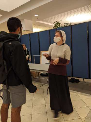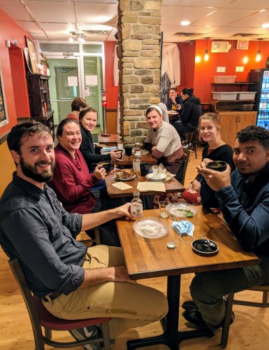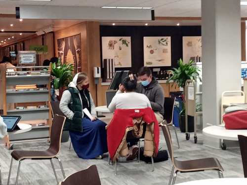 At 11:00, we put those jobs on hold and headed into the student center at the University Park. We split into small teams to pass out flyers about Happy Valley Christian Community and look for students willing to take surveys. Because of the rain and wind, it didn’t work to be outside where some of us started. Keith and Annalisa found warm, comfortable places in the library and people to talk with. Those who stayed in the student commons had less success meeting people. It seemed students were focused on getting out of the rain and to the next class. Still, there were some good connections that happened.