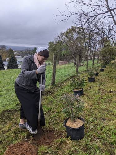 We left the Sowers trio there, and the rest of us came back for debriefing and orientation for the day with Ernest and Bryant. Some started digging holes to plant shrubs and others helped with deep cleaning in guest quarters.