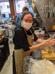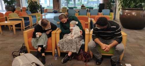 Meanwhile, the rest of the group worked on projects at ABT: planting shrubs and deep cleaning in the main building. Around 11:00, they headed into campus and the student commons. They wanted to find students to do surveys with, but the day was really quiet, and they didn’t find many passers-by. It gave them a chance to spend quality time as a group instead.