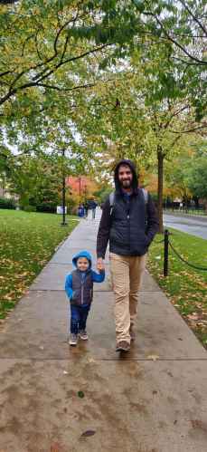 Theo walked the whole way from campus to Sowers, a strategy by his dad to get him ready for a nice long nap on the way home. Javon and Genny and their two boys returned to Guys Mills in the afternoon, and Javon plans to meet the group in the morning enroute to New York City.